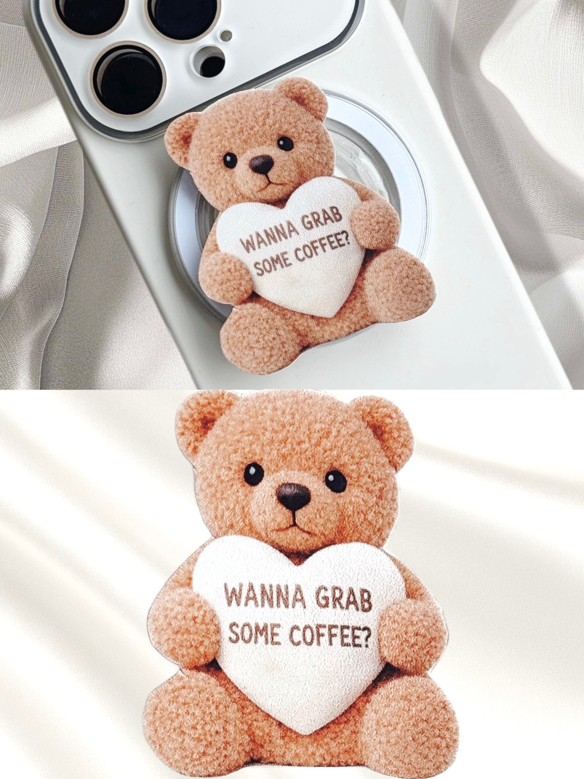 Der Coffee Buddy mit dem Schriftzug „WANNA GRAB SOME COFFEE?“ steht für Leichtigkeit, Verbundenheit und echte Coffee-Vibes.